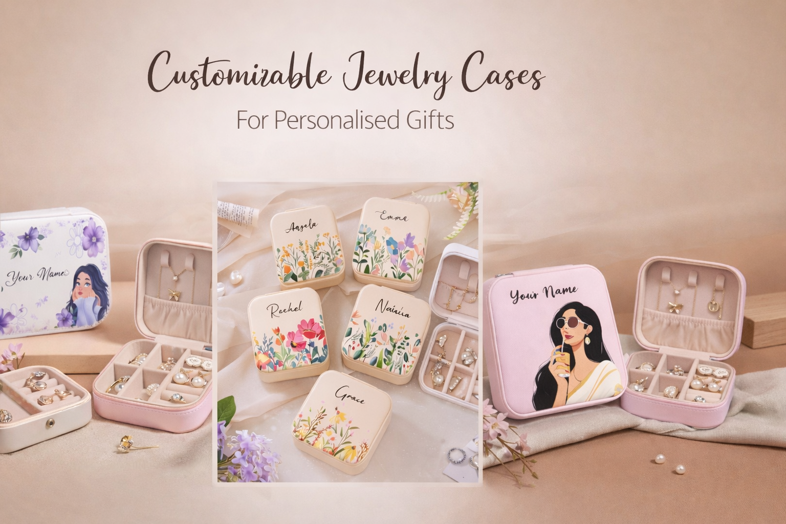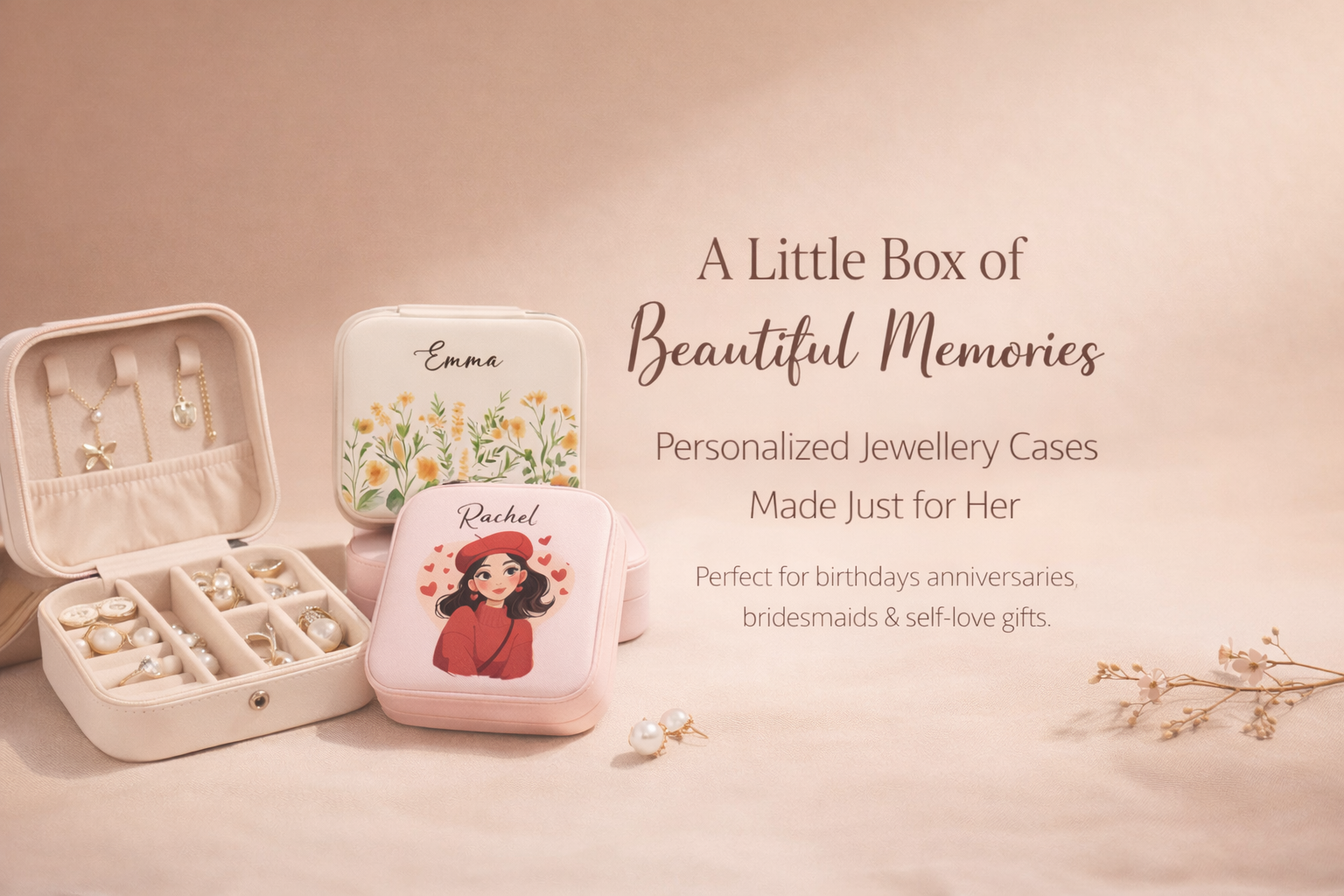 Peach Serenity – Personalized Jewellery Box with Name (Medium)
