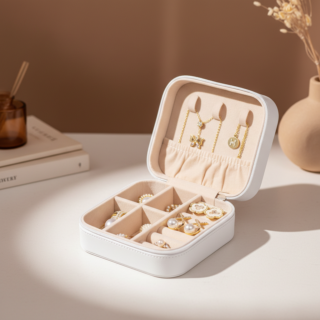 Personalized White Jewellery Box with Name – Sweet Blossom Heart & Butterfly Design | Travel Jewelry Organizer for Women & Girls