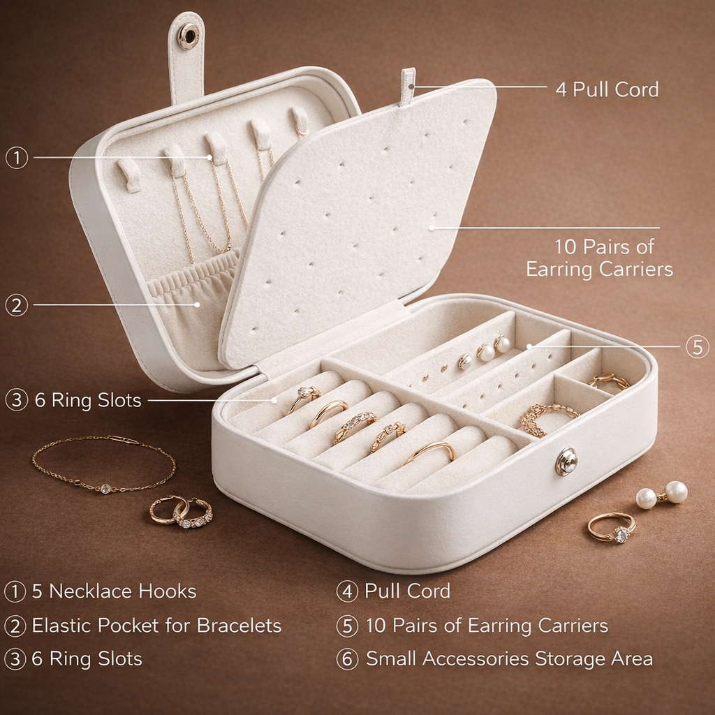 💍 Large Storage Capacity – Rings, earrings, bangles & chains